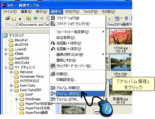 1.「アルバム保存」ダイアログを表示する