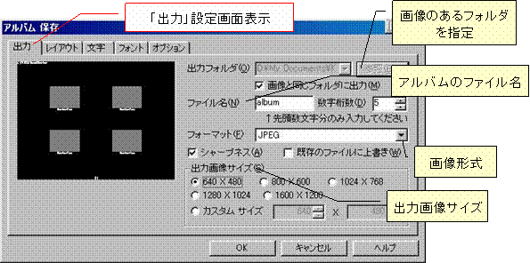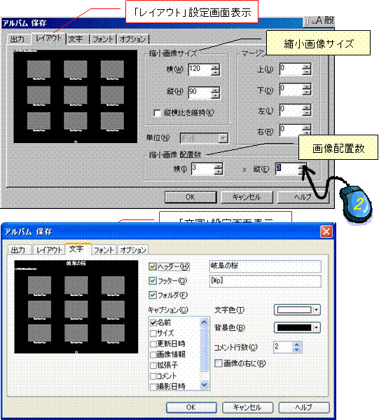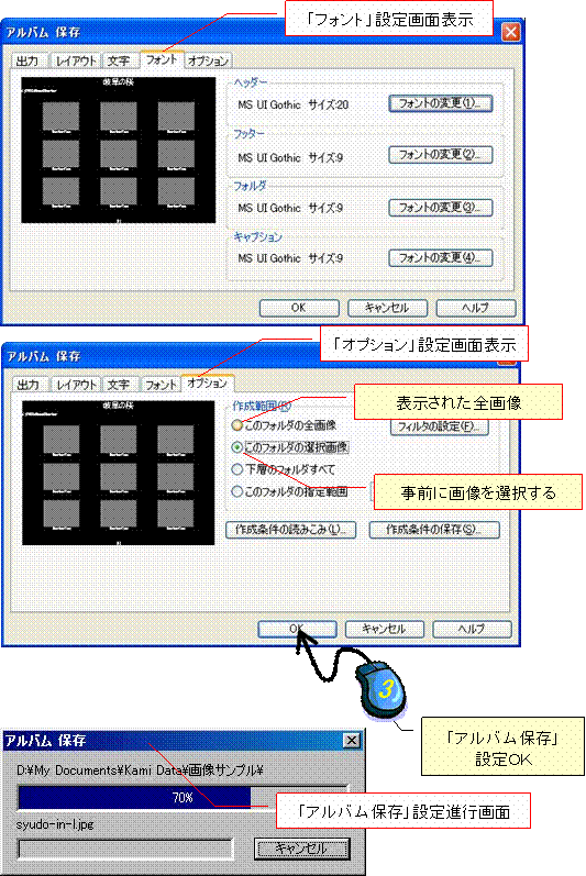 2.「アルバム保存」ダイアログを設定する