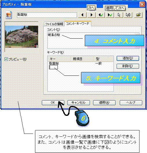 2.コメント、キーワードの入力