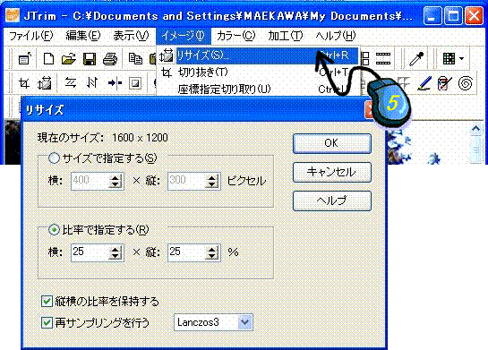 3.リサイズ「ダイアログ」を開く