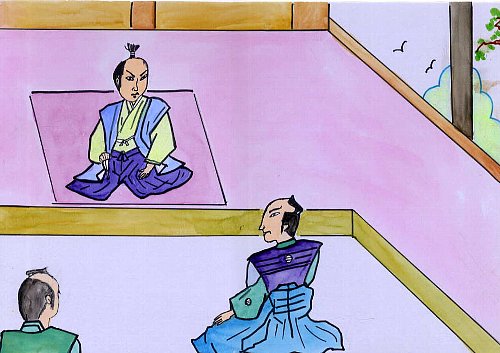 聞いて大変に心配しました。幕府は強くて勇気のあるお侍はいないかと、さがすことになりました。その話を聞いた信濃の国小県郡のお殿様は、早速家来の 根津甚平を呼び出しました。