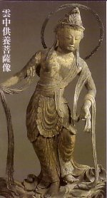 平等院には大和絵風九品来迎図(やまとえふうくぼんらいごうず)(国宝)、梵鐘(ぼんしょう)(国宝)、鳳凰1対(国宝)など平安時代の文化財が多数残っています。特に11世紀の仏像群としては唯一残る、雲中供養菩薩像52躯(く)(国宝)は、いずれも雲に乗り、様々な楽器を奏で舞うなど伸び伸びと繊細に彫り上げられています。これらは平等院ミュージアム「鳳翔館」(ほうしょうかん)で拝観する事ができます。 ☆