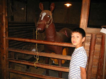 可児郷土歴史館には、昔の家を復元してあり、かわいい馬の人形もありました。 家の中で馬を飼っていることは小学校の4年生で、白川村の合掌造り(がっしょうづくり)の勉強をしたときに習いました。実際に家の中に馬がいるのを見たのは初めてだったので、びっくりしました。馬は家族と同じぐらい大事だったんだと思います。