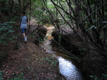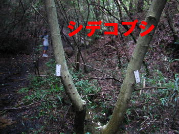 森の中を入っていくと、小さな川があり、湿地になっていました。シデコブシがたくさんありました。さらに森の中を進んでいくと、ついにお茶碗を発見した場所に着きました。 |
