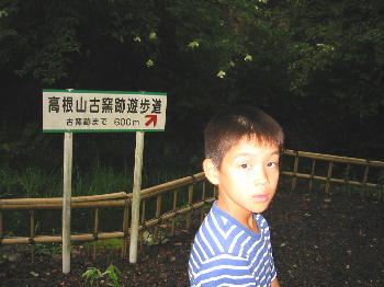 | 高根山古窯跡600mの看板をすぐに見つけました。山道をどんどん登っていくと、すごく急な階段があったり、前日の台風10号のため木が倒れていたり、蚊にさされたりと、すごく600mの山道を長く感じました。でもこの先に窯跡があるはずだと思うと、がんばることができました。 | |