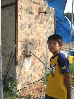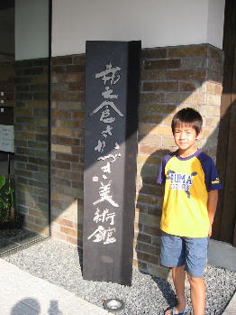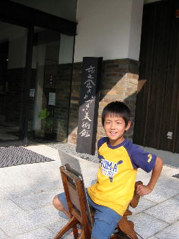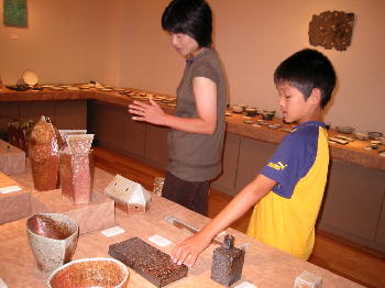 市之倉のさかづき美術館には、「塩窯(しおがま)」で焼いた焼き物が展示してあると聞いていたので、楽しみにして見に行きました。 まずは、「塩窯」をもう一度見に行ってきました。あのときは夜だったので窯がどのようなものかよく分からなかったけど、昼間に見ると、窯の火がすごかったことを思い出してきました。“早く作品を見たいなあ”と思いました。 「塩窯」で焼いた作品は、ミュージアムショップの横のギャラリー「宙」にありました。 「窯の中で気体になっが塩が、器(うつわ)にたくさんついたり、そうでなかったりするからとてもきれいだね。」 とお母さんが言いました。これも新しい美濃焼なのかなあと思いました。見に来てとてもよかったです。 |