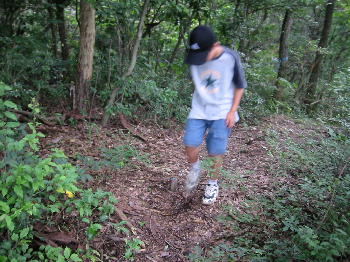 この標識の回りを探してみましたが、茶碗のかけらも発見することができませんでした。今から1000年以上前の窯跡を探し出すことは本当に難しいことだとつくづく思いました。 |