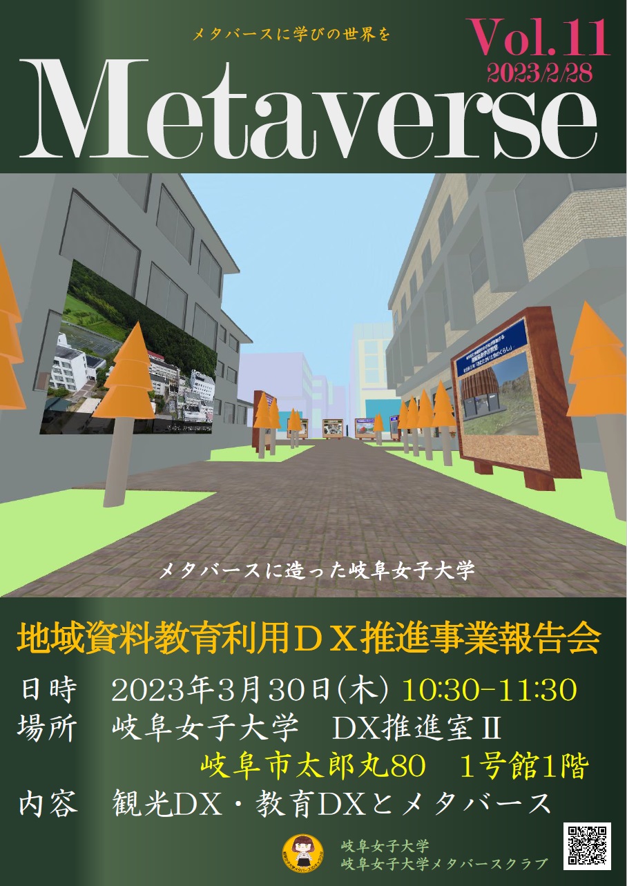 地域資料教育利用DX推進事業報告会・岐阜女子大学メタバースを公開 (企画チーム)(製作チーム)(検証チーム) |