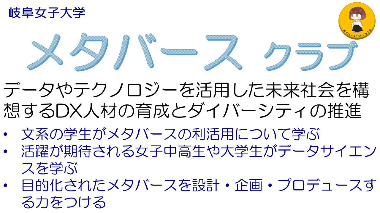 メタバースクラブの活動の様子と製作中の岐阜女子大学校舎を見ていただけます。