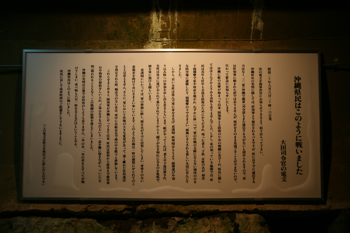 昭和20年(1945年)6月13日午前1時頃、司令官大田實少佐をはじめ多くの将兵や軍に召集された住民が、この地で最期を遂げた。