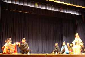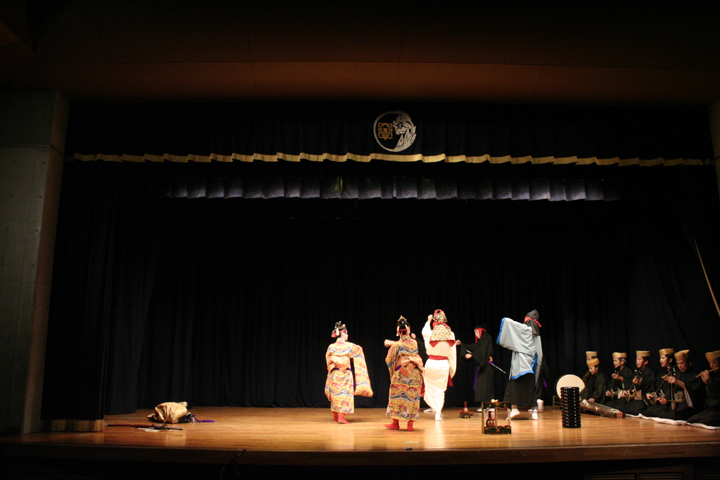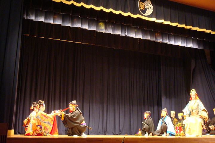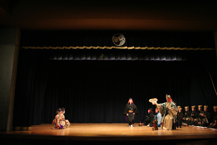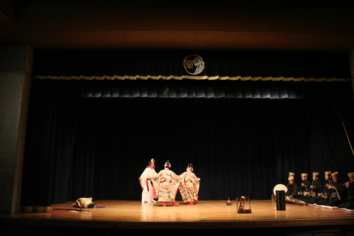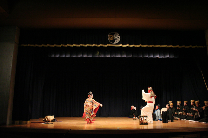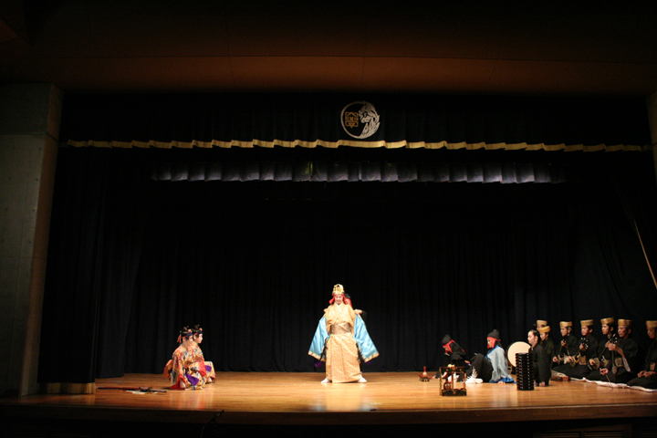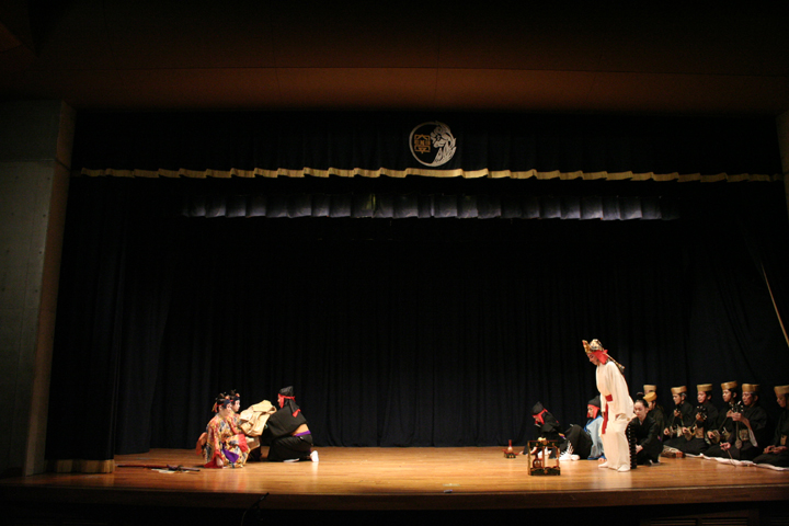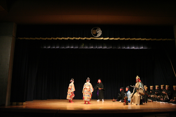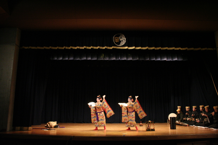 舞踊・音楽・台詞の三つの要素から構成された沖縄独特の戯曲。国の重要無形文化財に指定されている。2010年11月、国連教育科学文化機関(ユネスコ)は「人類の無形遺産の代表的な一覧」へ「組踊」を記載することを決定した。