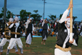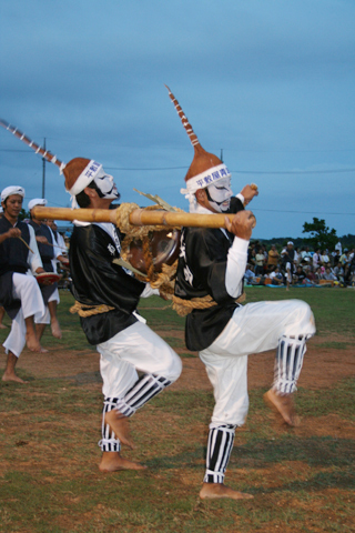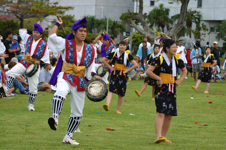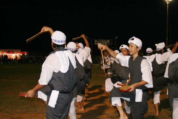 お盆の時期に現世に戻ってくる祖先の霊を送迎するために踊られる伝統芸能。主に、旗頭、太鼓踊、手踊、チョンダラー、地謡で構成され、若者たちが踊りながら地区の道を練り歩く。約400年前に福島県いわき市出身の袋中上人が伝えた念仏踊りが沖縄のエイサーの源流であるといわれる。