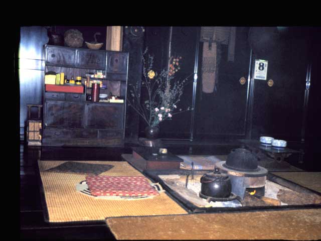 中央に見えるのは、囲炉裏です。 庫裏には、客間であるデイが3室(クチノデイ・ナカノデイ・オクノデイ) あり、特異なつくりをしています。