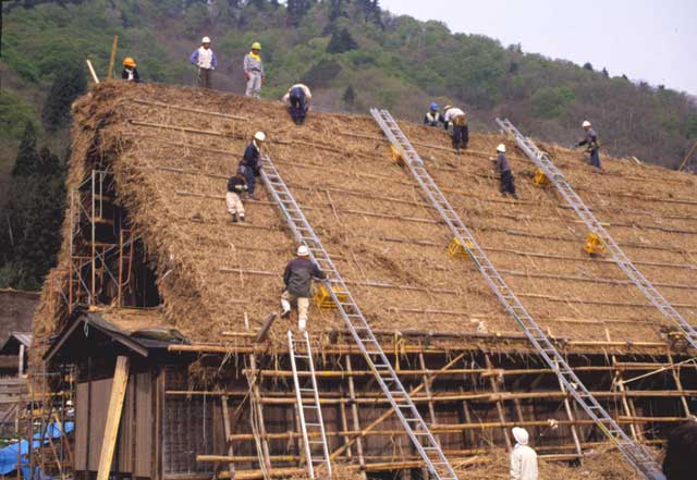 15 こうして、松古家の屋根葺きは完了しました。 |