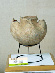 縄文後期になると、土器の形は抽象化されてくる。壺形土器は、飛騨地方のみに見られる独創性のある形をした土器である。