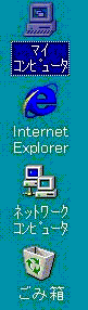 マイコンピュータは、このパソコンの中身が入っています。ダブルクリックをするとウインドウが開き、フロッピーやハードディスク、プリンタ、コントロールパネルなどがあります。